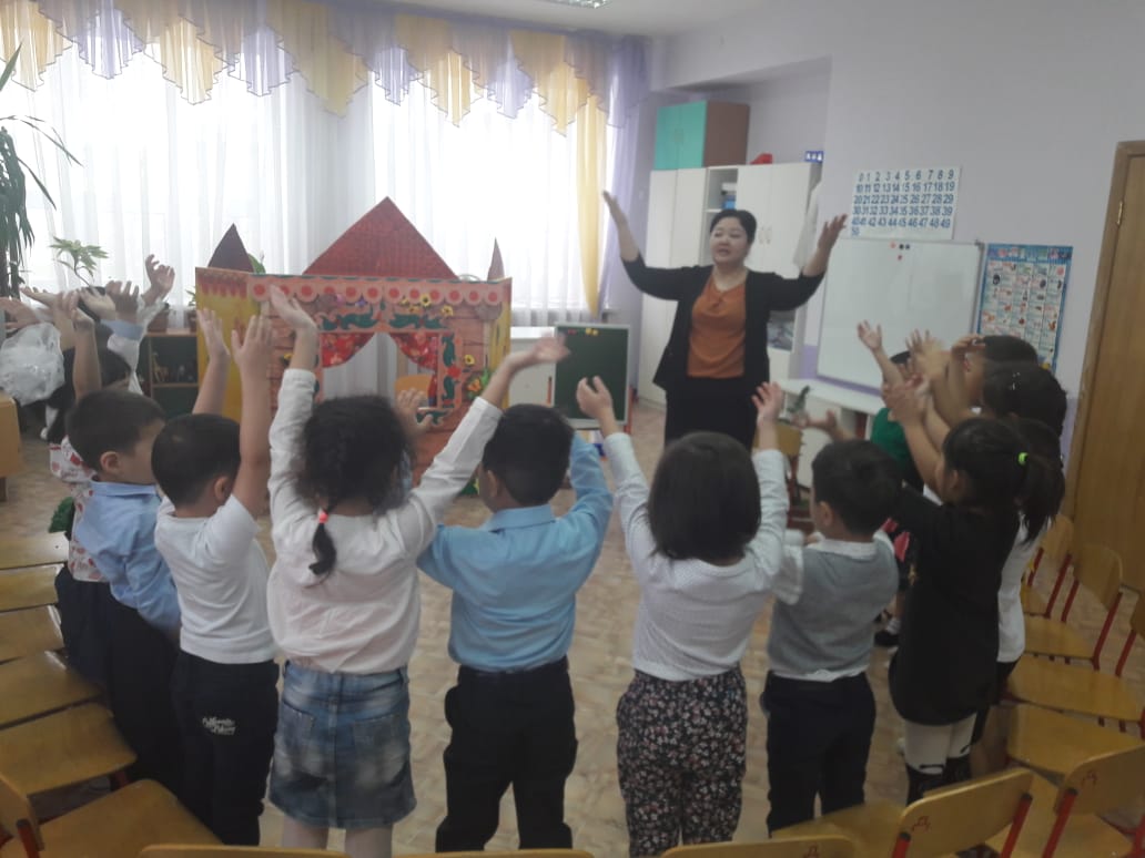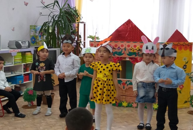 Ересек тобының балалары «Үйшік» ертегісін сахналады.
