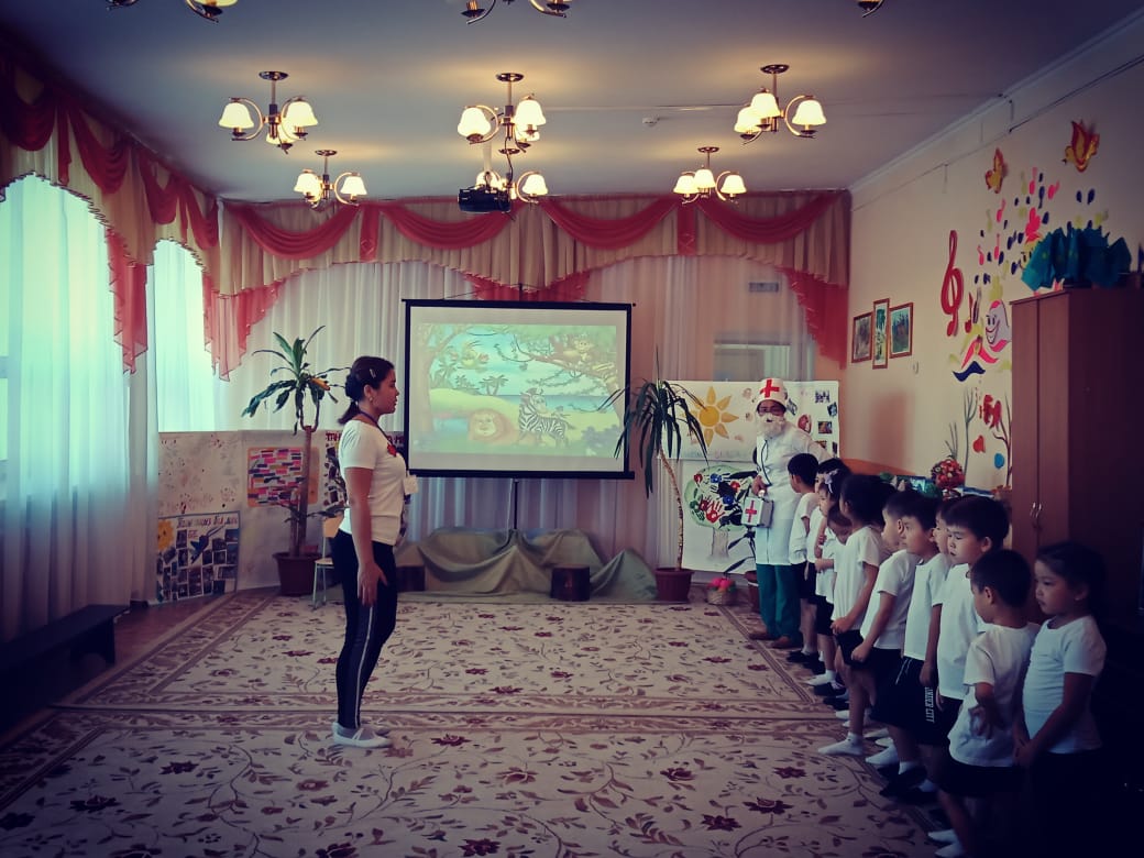 2018 жылы қараша айында кластер жоспары бойынша Білім беру саласында патриоттық - адамгершілік тәрбиені тиімді қолданып, педагогикалық қызметте тәрбиешілерімен, дене шынықтыру нұсқаушыларына тәжірибе алмасу М.Абенова дене шынықтыру нұсқаушысы ересектер тобының балаларымен «ДӘРІГЕР АЙБОЛИТТІҢ КӨМЕКШІЛЕРІ» атты оқу қызметін көрсетті.