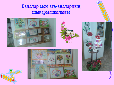 -Ата-аналар мен балалардың біріккен нәтижелі іс-әрекеттері (көрмелер, қабырға газеті, қолөнерлер);