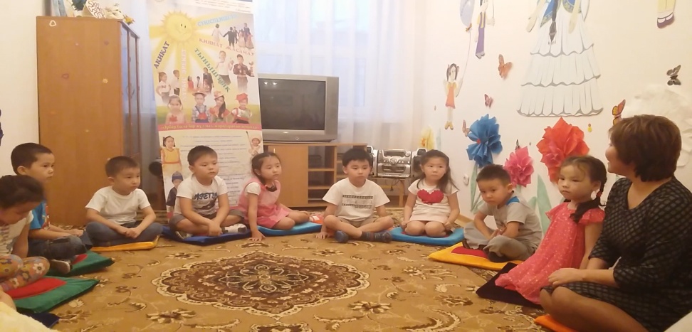 Балабақшада Қазақстан Республикасы мектепке дейінгі тәрбие мен оқытудың мемлекеттік жалпыға міндетті стандартының мектепке дейінгі тәрбие мен оқытудың үлгілік оқу бағдарламасына сай жазылатын барлық ұйымдастырылған оқу қызметіне “Өзін-өзі тану” рухани-адамгершілік білім беру бағдарламасы бойынша бес құндылықтарды АҚИҚАТ, СҮЙІСПЕНШІЛІК, ДҰРЫС ӘРЕКЕТ, ІШКІ ТЫНЫШТЫҚ, ҚИЯНАТ ЖАСАМАУ осы құндылықтарлың қасиеттерінің мағынасын ашамыз..