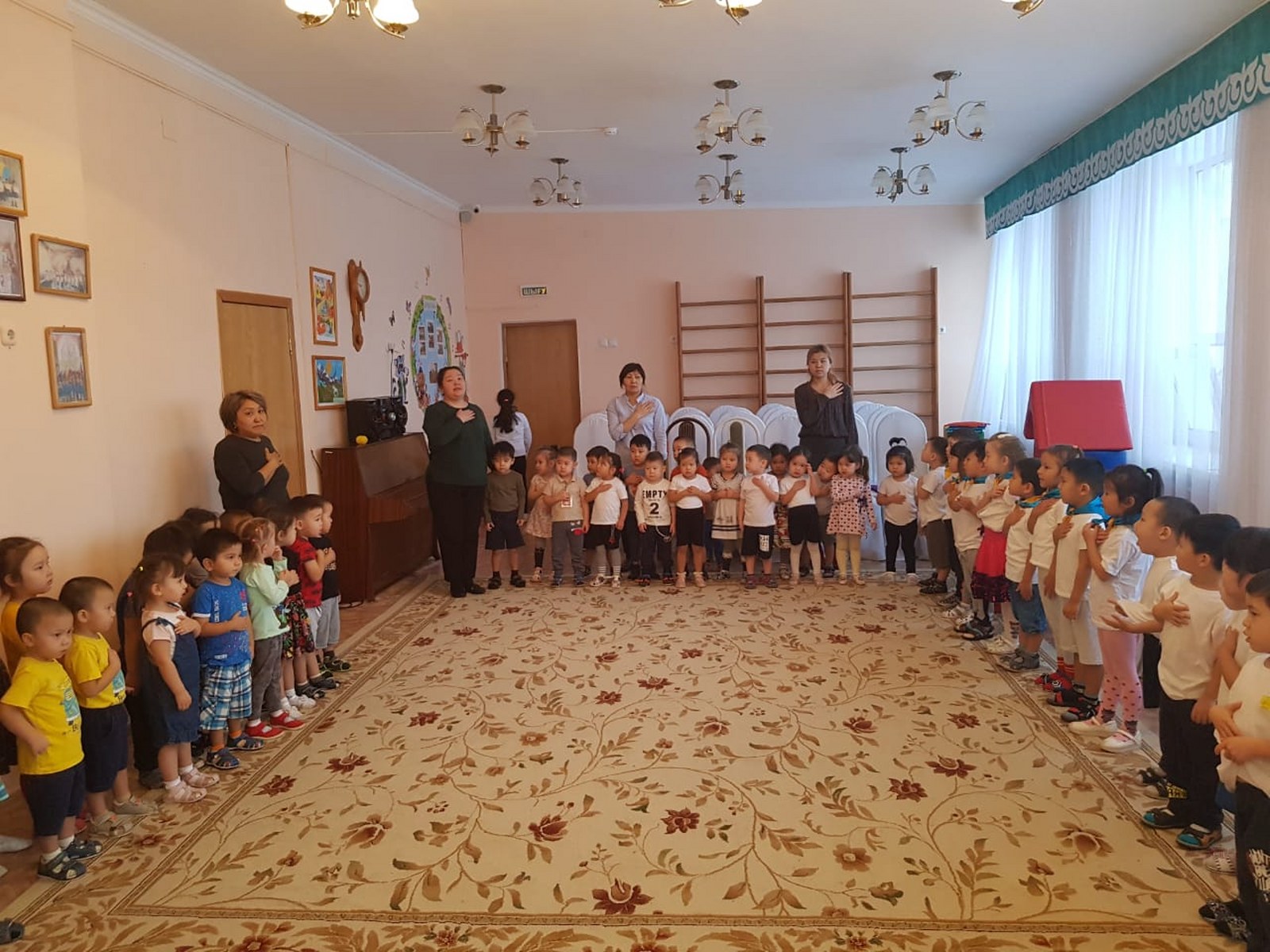 Апталық іс-шара Қазақстан Республикасының ән ұранымен басталды. «Балапан», «Қызғалдақ», «Күншуақ» топтары белсене қатысты.