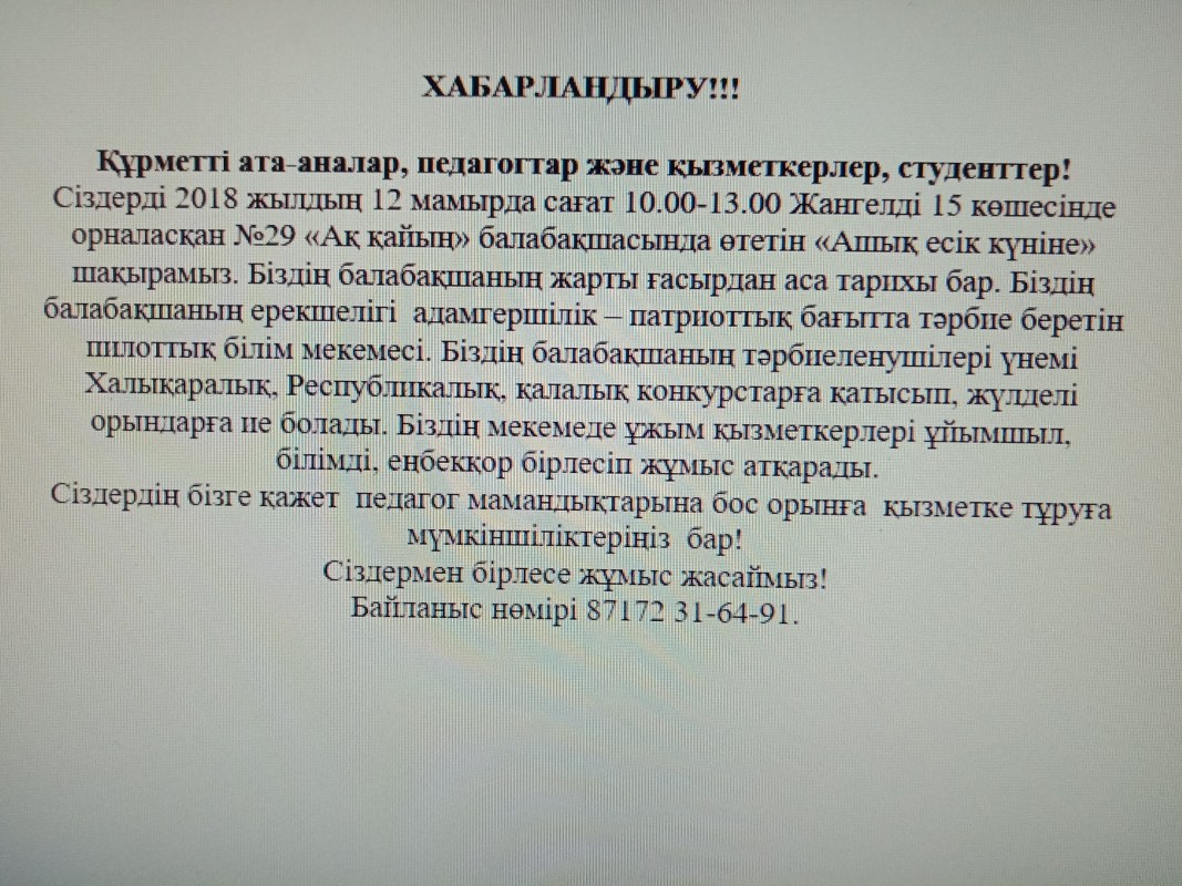 Детский сад № 29 «Ақ қайың»