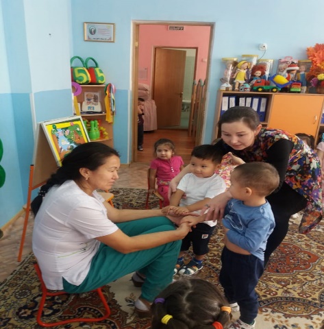Аптаның бірінші күні «Көңіл-күй экраны» атты психологиялық ойыны, «Қызғалдақ», «Күншуақ» ересек топтарында «Суретті аяқта» атты әдістемелік сабақ, екінші кіші «Балапан» тобында «Сиқырланған жүрек» атты тренингі өтті.