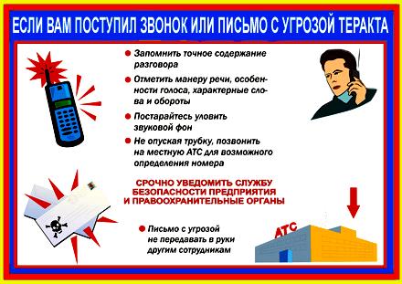 Учитывая, что в настоящее время телефон часто используется для сообщения сведений, содержащих информацию о заложенных взрывных устройствах, о захвате людей в заложники, вымогательстве и шантаже, не оставляйте без внимания ни одного подобного сигнала!