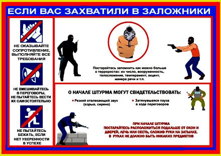сохраняйте выдержку и самообладание, не возражайте и не пререкайтесь с террористами, на все действия спрашивайте разрешения у террористов;