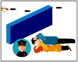 в случае стрельбы сразу же ложитесь и осмотритесь, выберите ближайшее укрытие и проберитесь к нему, не поднимаясь в полный рост. Укрытием могут служить выступы зданий, памятники, бетонные столбы, бордюры, канавы и т.д;
